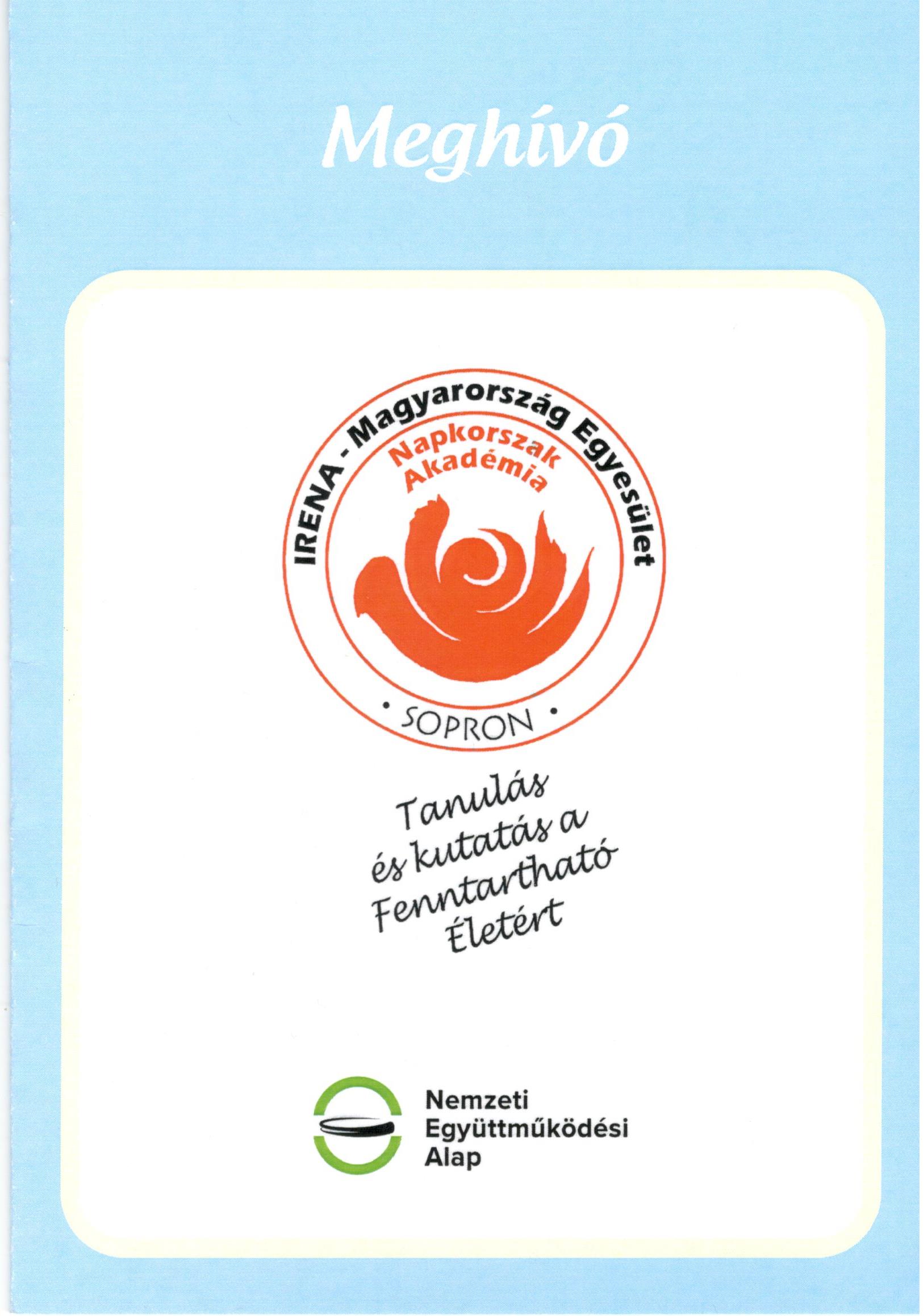 BESZÁMOLÓ AZ IRENA-Magyarország számára nyújtott NEA-E-15-0075-ös kódszámú támogatásának felhasználásáról