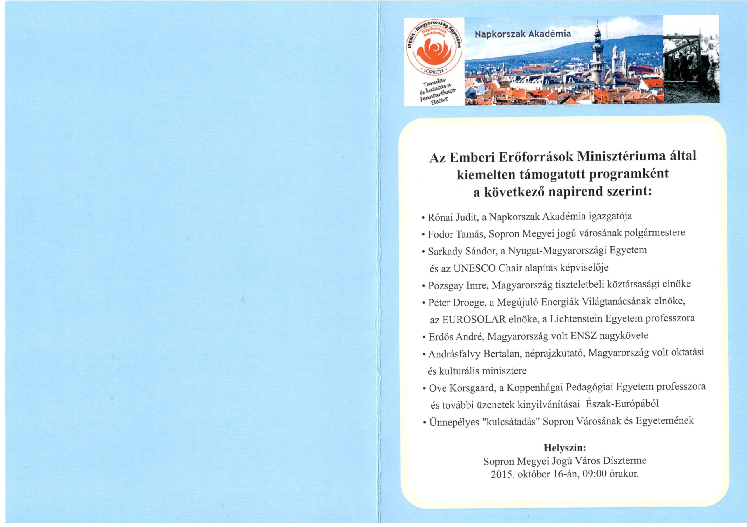 a soproni Akadémia egyesületi tagja, az EDC és más ENSZ-hez kötődő projektjeink nélkülözhetetlen professzora
